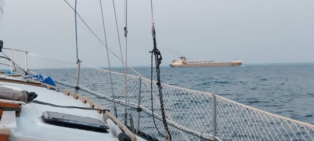We set up the downstairs salon for sleeping and Melanie went down around Sunset to try and get some sleep. We moved nicely through ever decreasing waves with a steady 10 to 12 knot winds pushing us along. Ship traffic abounded and the shore of the thumb of Michigan was outlined in red lights, all flashing in unison on top of the windmills that lined the sky. It was a beautiful starry night, clear skies above with some clouds on the horizon but it was great for stargazing. I’m always amazed at the beauty and the grandeur of God’s creation.