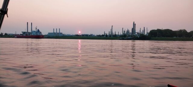 After lowering the dinghy we went into shore and met up with Art and Carol for dinner. We had a wonderful evening and then returned to the boat for a good night’s sleep. Even though we were anchored close to shore, the current held the boat steady and we felt like we were at the dock! The boat barely moved all night. In the morning, we awoke to a beautiful sunrise then proceeded after eating breakfast to haul up the anchor which was absolutely covered in weeds! We made our way to the downward bound ship channel and proceeded up the river to our next stop.