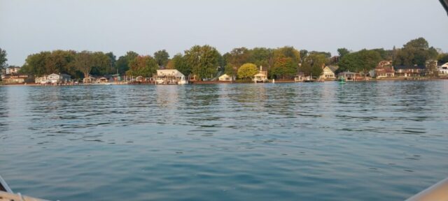 Next day was a long day of work for me while Melanie went grocery shopping, did laundry and other miscellaneous chores. We saw people come and go from the marina, there is a lot of traffic in and out of there as it’s the only place to stop for many miles. We befriended the man in the boat next to us and it turns out he is heading back to Port Clinton and is looking for a place to dock his boat so we gave him the information about our marina. We enjoyed our conversations after work and took another stroll into town after dinner for another sample of ice cream. Harrisville is a very quiet peaceful little town and will always hold a special place in our hearts. After a shower we went to bed and woke up early the next morning to prep for departure. I filled the water tanks, we took Windsor for a walk and then dropped our dock lines and departed. There was not a breath of wind; the lake was as calm and flat as a mirror. It was going to be another long day of loud Motoring, I guess that’s better than being bashed around below while trying to work LOL.
